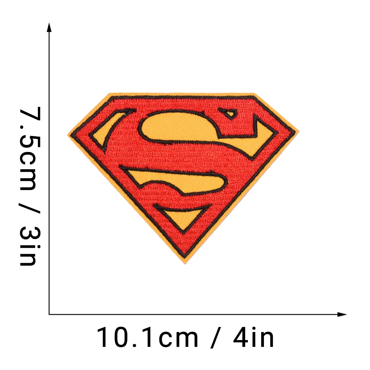 - Display the commanding large superman iron on patch, offering a significant 4-inch emblem for standout superhero style.